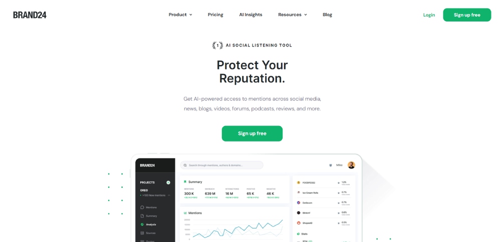 Their AI can detect over 108 languages, ensuring that it will still track your brand in any language. Plus, they create clouds with mentions.